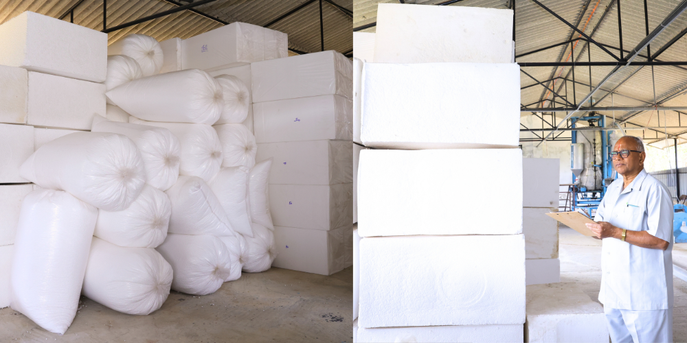 Today, our facility inΒ Ibrahimpatnam, Hyderabad manufactures four core EPS products β thermocol sheets, bean bag balls, pipe insulation sections, and cold storage boxes β all to precise density specifications with strict quality control at every stage.